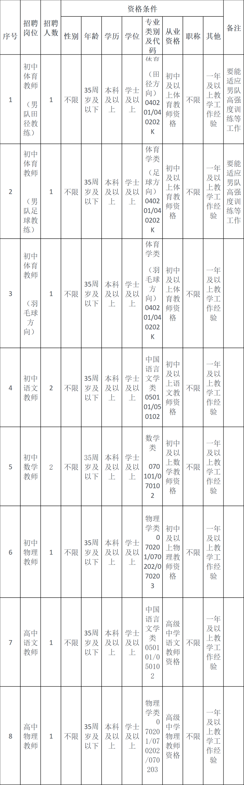 2.教师岗位要具有相应学段及学科的中学教师资格;