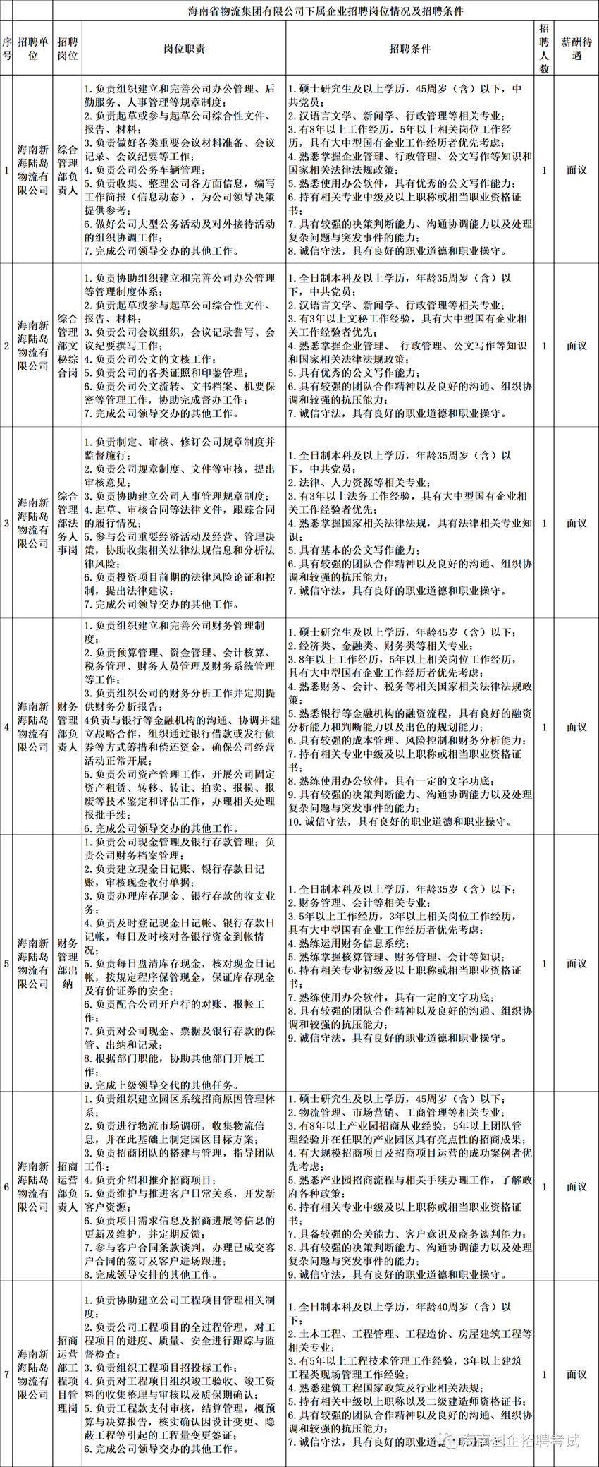 (二)各岗位招聘条件见附件《海南省物流集团有限公司下属企业招聘岗位情况及招聘条件》。