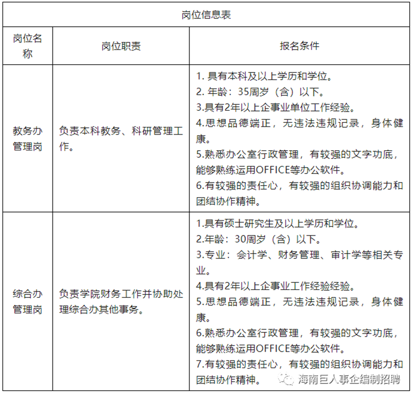 (三)具体岗位职责、报名条件要求详见《岗位信息表》