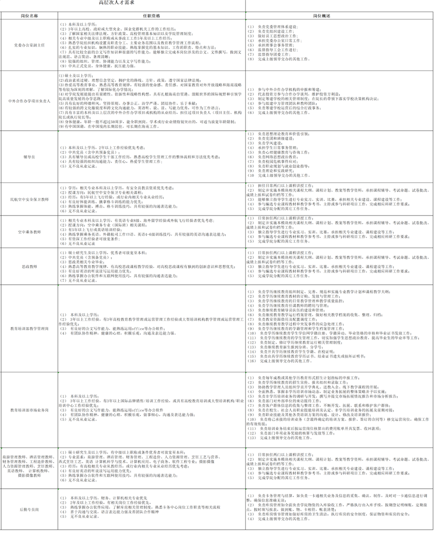 三亚中瑞酒店管理职业学院招聘