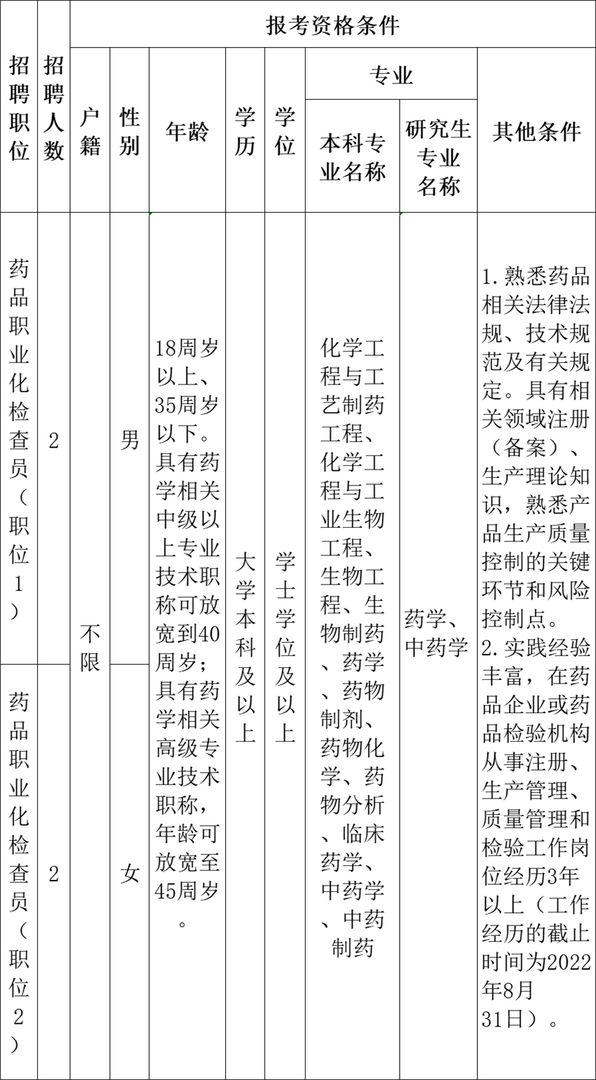 计划招聘药品职业化检查员4名(非事业编制人员)。具体拟招聘岗位情况及要求见附件1。