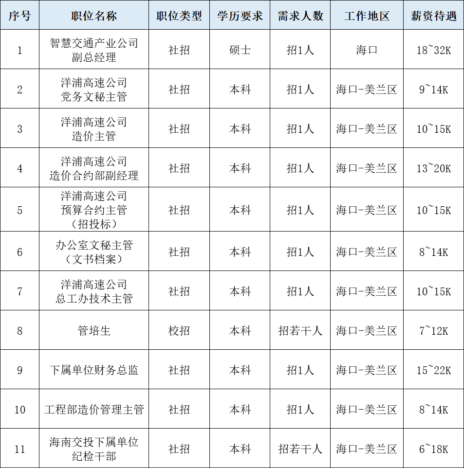 一、招聘岗位: