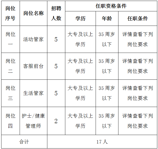 2.有养老、酒店、医疗、养老、高档公寓等服务业从业背景,或有养老、家政、护理员、酒店前台、物业前台等服务类相关工作经验;