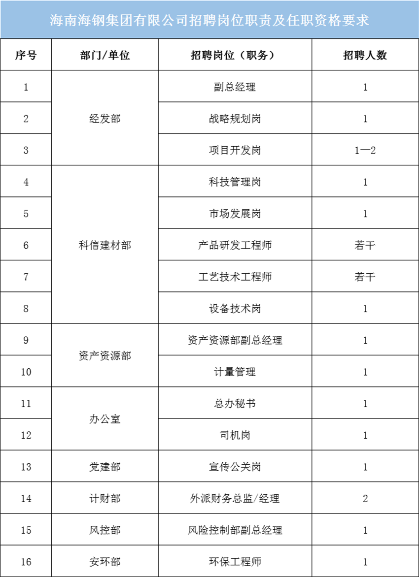 海南海钢集团有限公司(简称“海钢集团”)是海南省省属重点国有企业,是以资源综合利用、建材制造、新材料研发、区域开发为主业,产业投资与产业运营相结合,生产经营、资产经营与资本运营一体化的产业集团。公司拥有全资子公司7家、控股公司4家、参股公司14家。全资、控股公司聚焦集团主业,参股公司中有上市公司4家、金融类企业4家,形成协同发展格局。近年来,公司荣获海南省五一劳动奖状、文明单位、模范劳动关系和谐企业等称号。