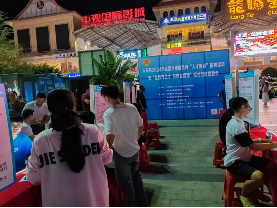 (图1:乐东县2024年民营企业服务月“人才夜市”招聘活动现场)