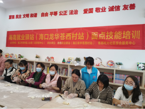 2023年12月29日上午9:30,海南就业驿站(龙华苍西村站)与苍西村大社区综合服务中心联合举办了“面点技能培训”活动。本次活动共有25位学员参与,大家在专业老师的指导下,亲手制作了包子、馒头、饼干等各式美味面点,不仅提高就业能力和竞争力,也掌握了创业的技能。