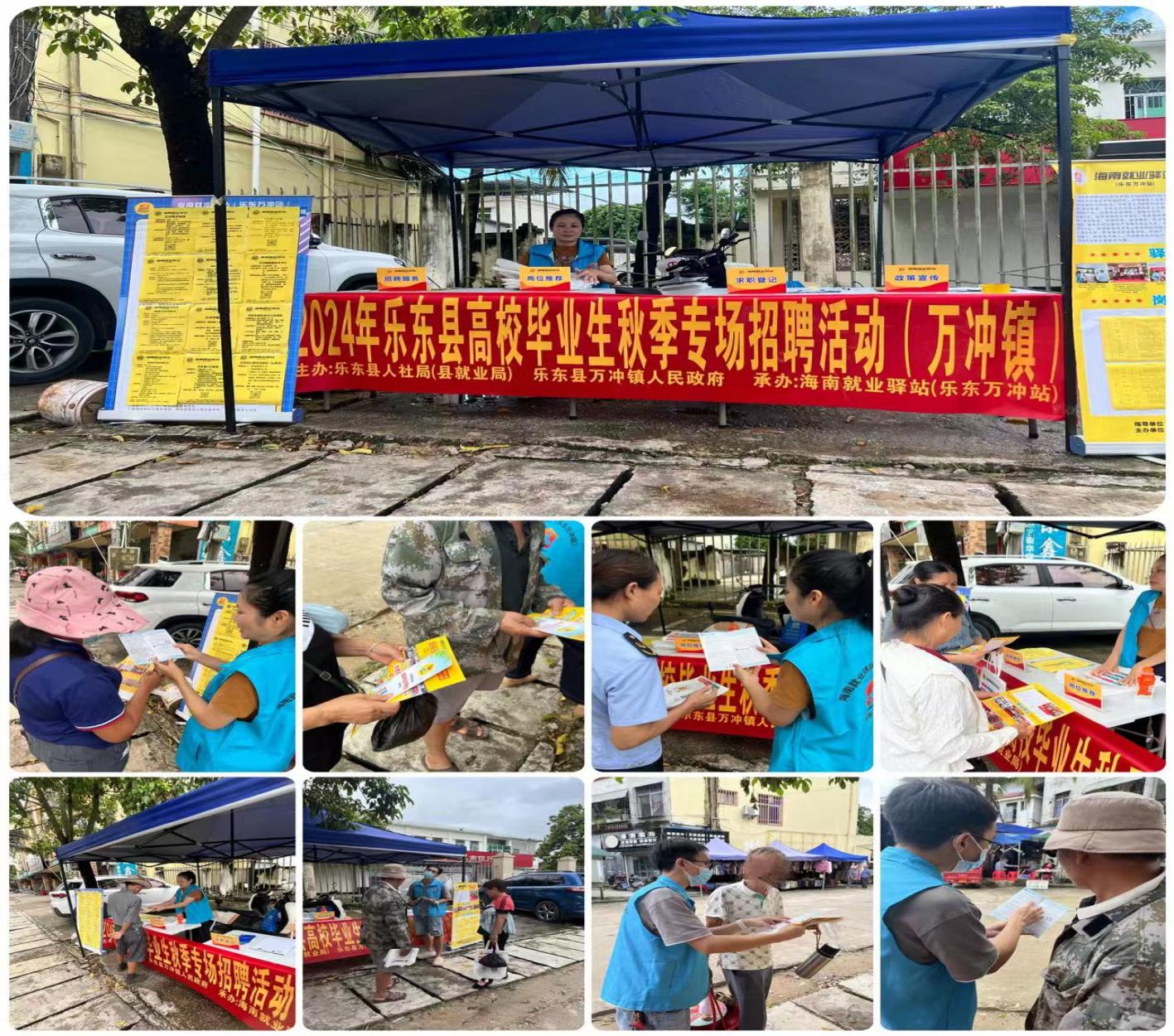 2024年9月20日上午10点,海南就业驿站乐东万冲站在万冲镇农贸街开展职引未来—2024年乐东县高校毕业生秋季专场招聘活动(万冲站)。此次活动共邀请三亚西岛大洲旅业、中和农信乐东分公司、海南象元有限公司、海南大庄园肉业有限公司等28家企业参与,涉及物流、教育、电子、销售、服务、技术工、设计等行业,为求职者提供招聘岗位270个,现场累计发放就业创业宣传材料40余份,向求职者解答20余人次,初步达成就业意向2人。