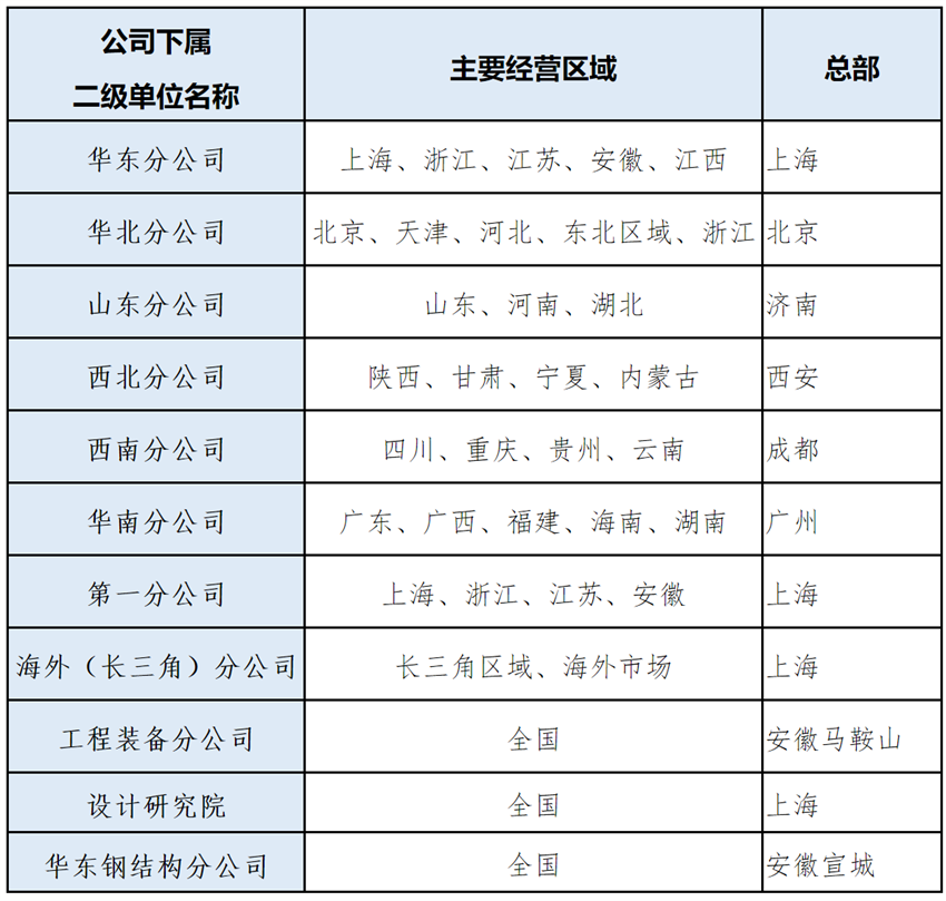 中建八局新型建造工程有限公司是中国建筑集团(位列2021年《财富》“世界500强”第9位)旗下中国建筑第八工程局有限公司(位列上海“百强企业”第9位)的全资子公司。前身为2013年成立的中建八局钢结构工程公司,公司总部位于上海。公司下设华北分公司、华南分公司、华东分公司、山东分公司、西南分公司、西北分公司、海外(长三角)分公司、第一分公司、工程装备分公司、设计研究院、华东钢结构分公司。公司国内经营区域覆盖长三角、京津冀、粤港澳大湾区、成渝经济圈、海南自贸港、雄安新区、临港新片区等地区,国外市场主要集中在亚洲、非洲等国家和地区。