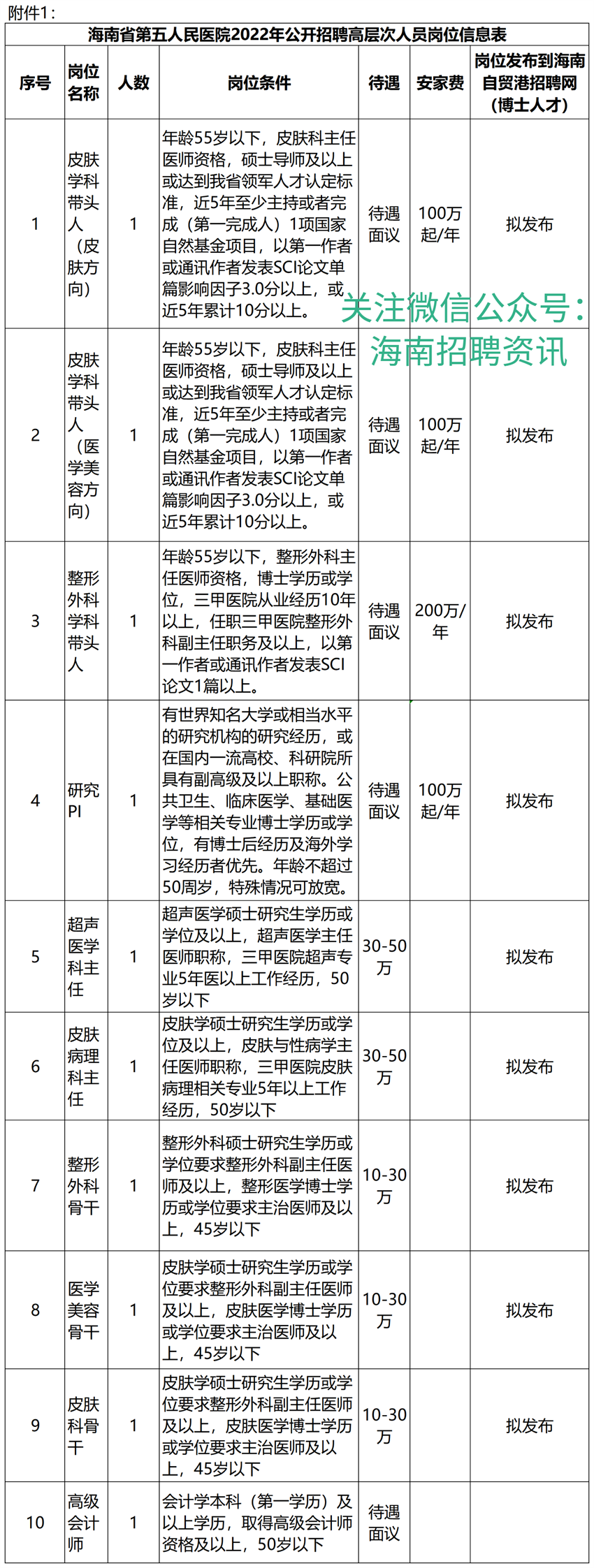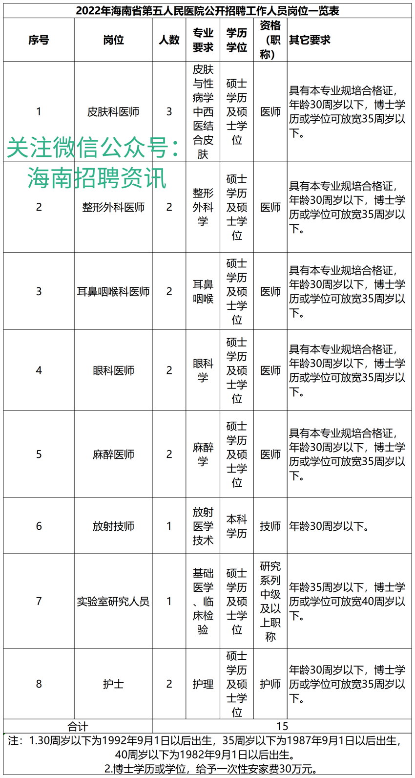 海南省第五人民医院2022年招聘工作人员公告