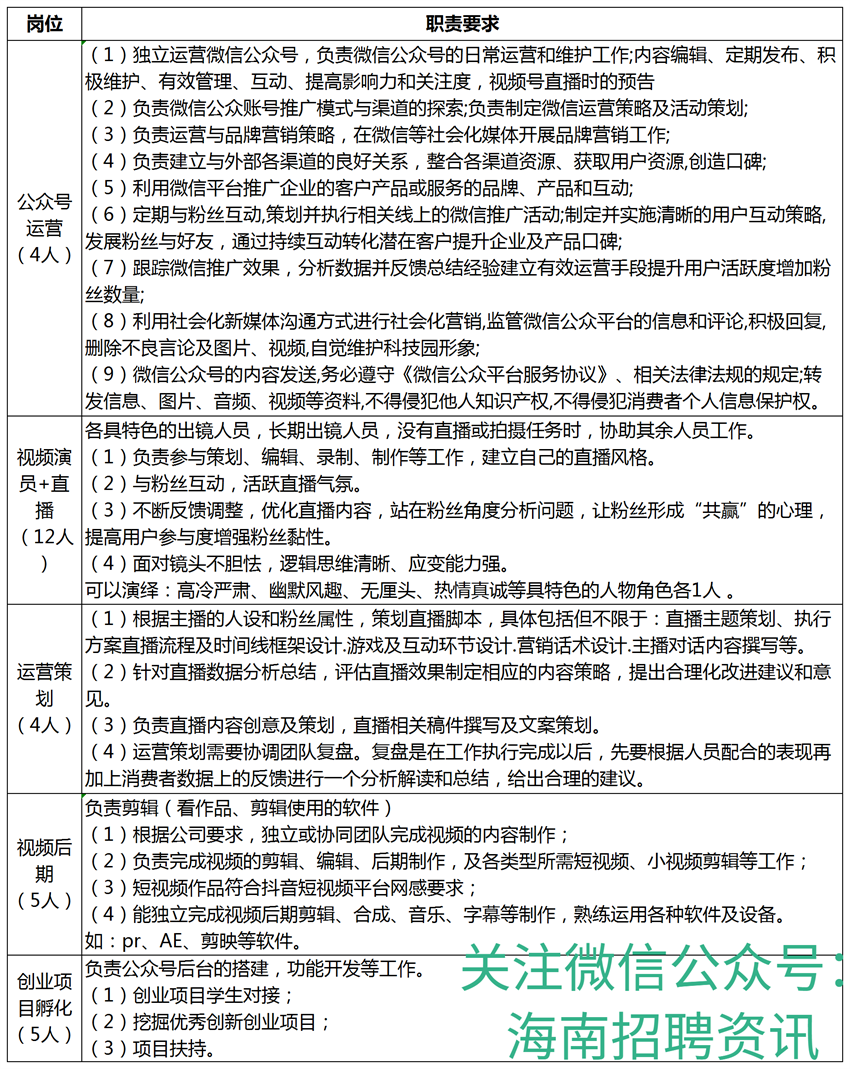 一、招聘岗位及要求