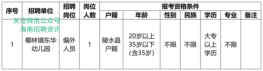 陵水黎族自治县椰林镇东华幼儿园招聘编外人员公告