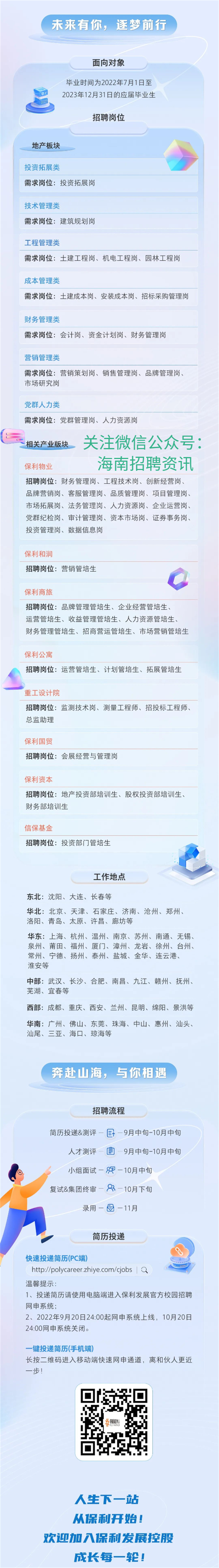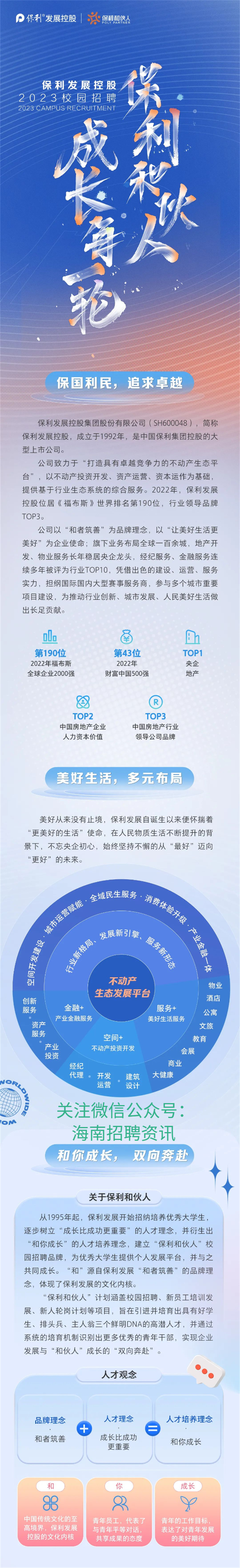 国企 海口/三亚/琼海工作,保利发展控股集团有限公司2023校园招聘人员公告