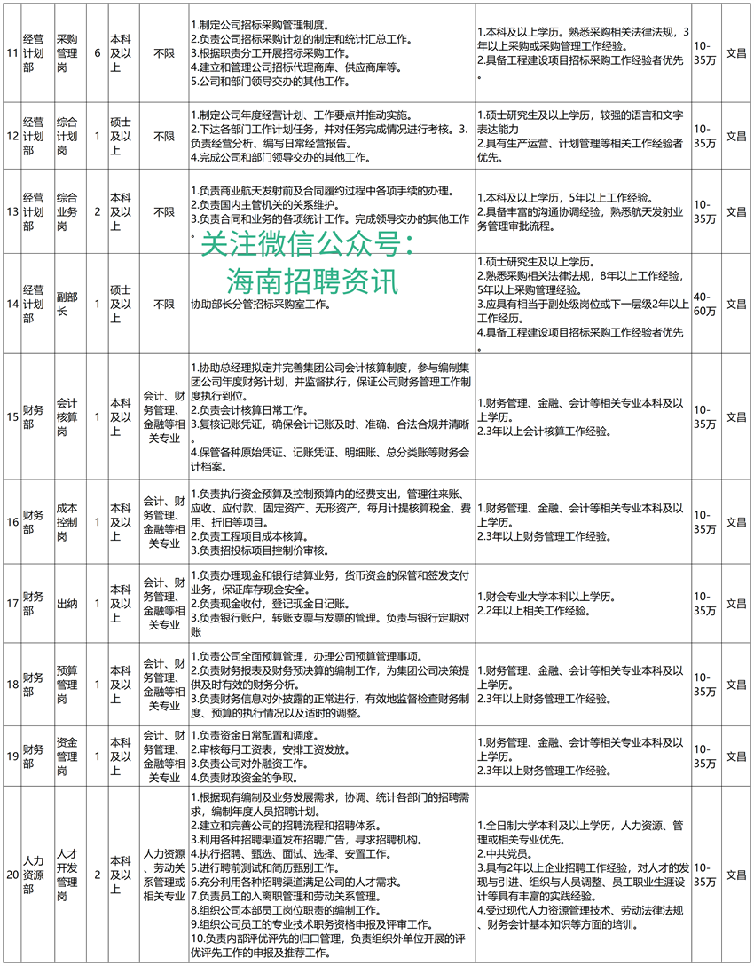 3.经营计划部:副部长1名、采购管理岗6名、综合计划岗1名、综合业务岗2名;