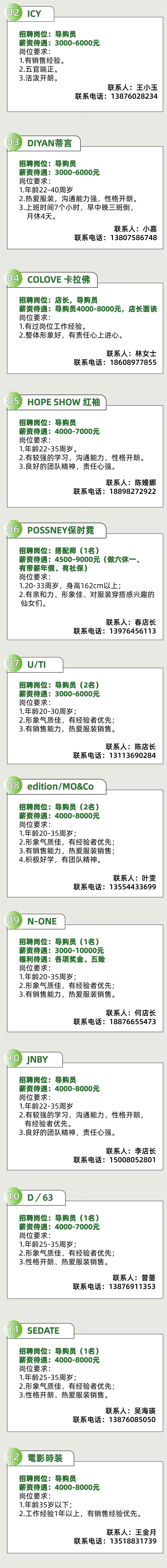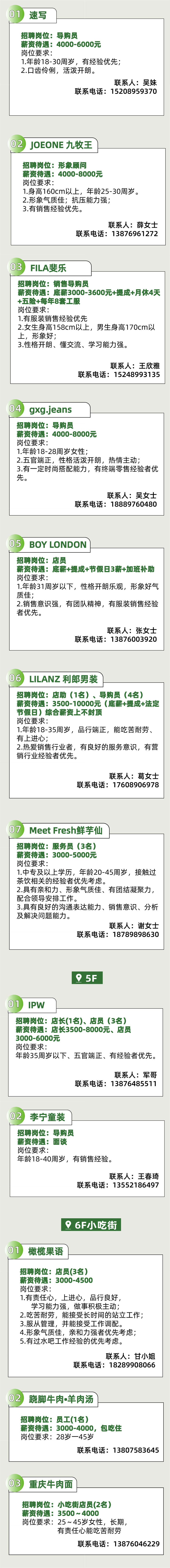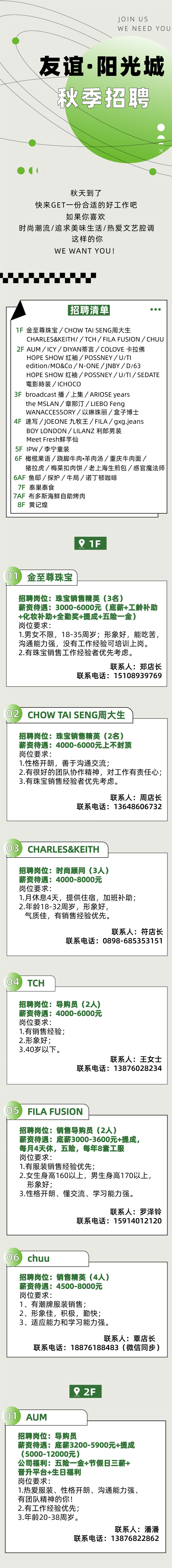 超多岗位,海口友谊阳光城品牌店招聘