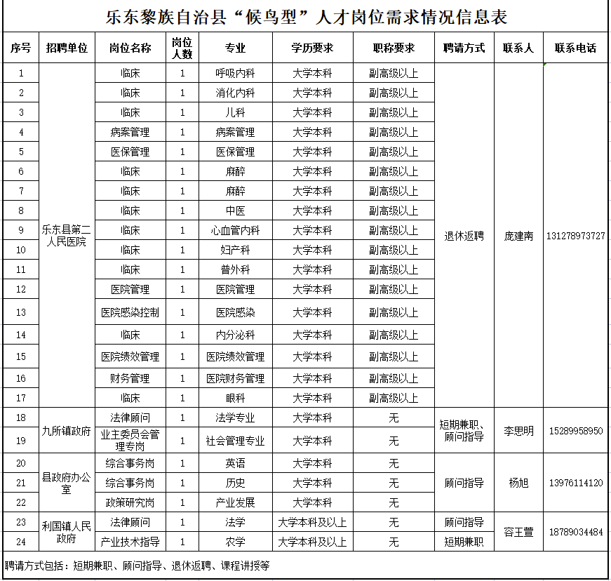 乐东黎族自治县关于诚聘24名“候鸟型“人才的公告