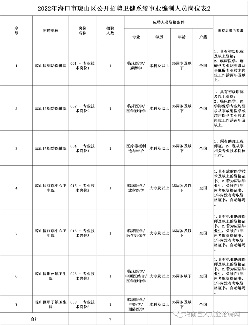 正式事业编制!招7人,海口市琼山区卫健系统2022年招聘事业编制部分岗位延长报名时间