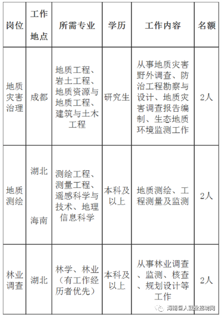 4、要求身体健康,有吃苦精神,能到野外开展工作。