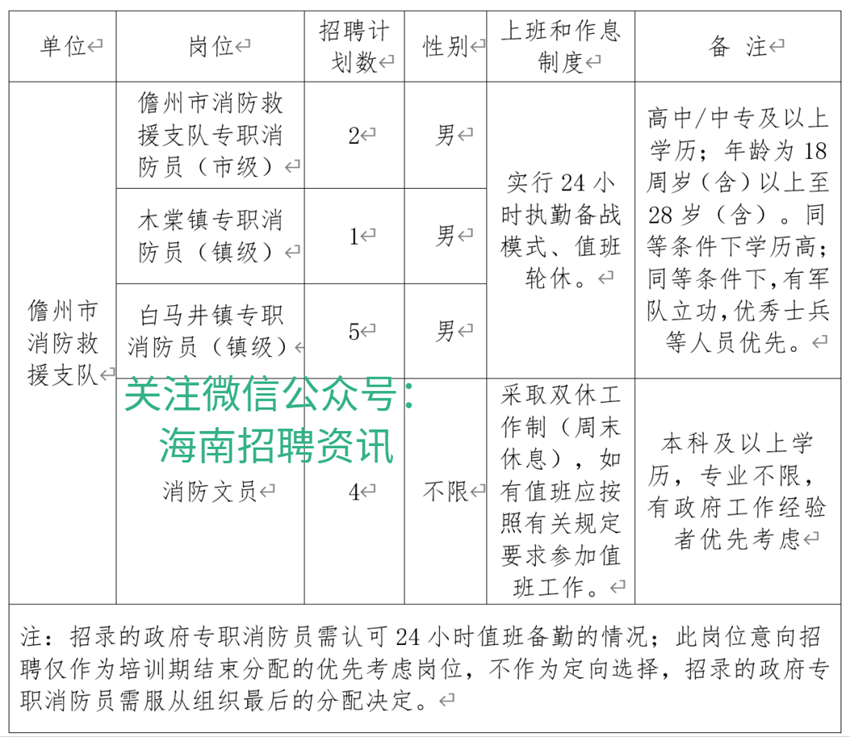 为加强我市消防救援队伍建设,适当补充消防队伍新生力量,儋州市消防救援支队委托第三方公司面向社会公开招聘8名政府专职消防员,4名消防文员,现将相关事项公告如下: