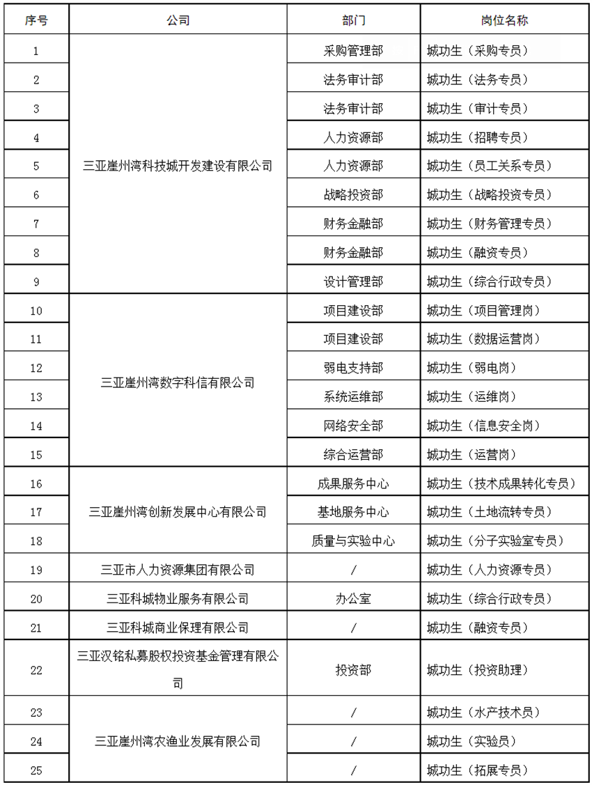 综合行政专员、财务管理专员、招聘专员、采购专员、项目管理岗等 三亚崖州湾科技城开发建设有限公司 2023届校园招聘