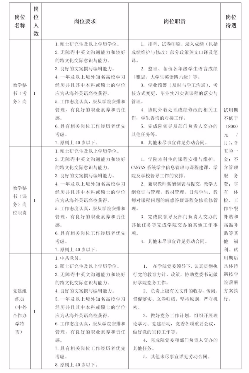 1.工资标准试用期(2个月)不低于人民币税前8000元/月(含单位和个人缴纳五险一金)。同时享有体检、工作午餐补贴和高温补贴等其他福利。试用期结束后具体待遇按学院薪酬方案执行。